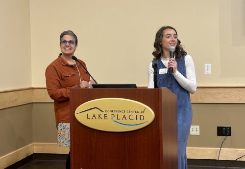 (1) Adirondack Council’s Sunita Halasz (left) and ANCA’s Carlie Leary discussed climate outreach and resilience findings with attendees at ANCA’s 2025 Clean Energy + Small Opportunities. Big Opportunities.Conference in Lake Placid, N.Y.